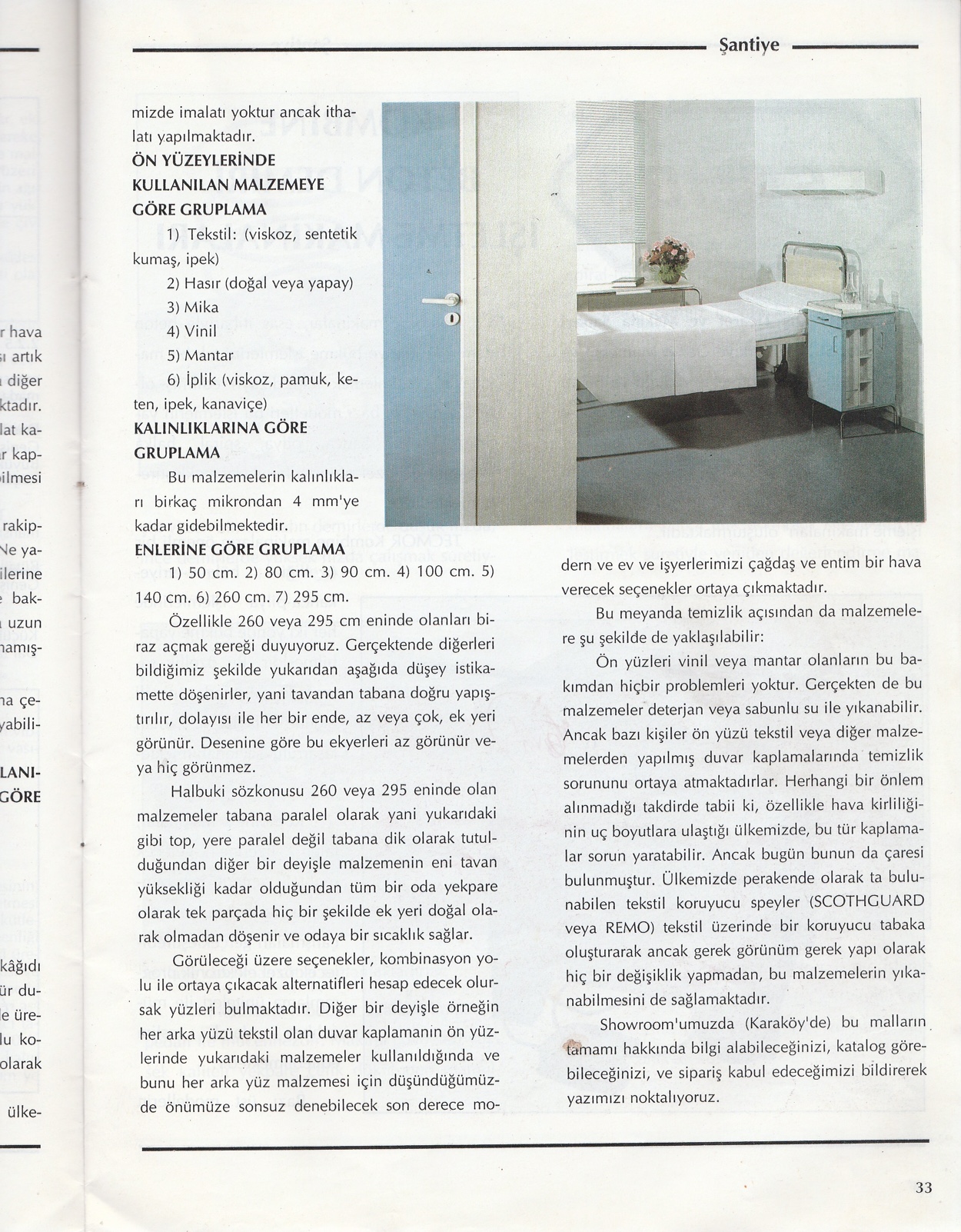 Görüleceği üzere seçenekler, kombinasyon yolu ile ortaya çıkacak alternatifleri hesap edecek olursak yüzleri bulmaktadır. Diğer bir deyişle örneğin her arka yüzü tekstil olan duvar kaplamanın ön yüzlerinde yukarıdaki malzemeler kullanıldığında ve bunu her arka yüz malzemesi için düşündüğümüzde önümüzde sonsuz denebilecek son derece moderne ev ve iş yerlerimizi çağdaş ve entim olarak hava verecek seçenekler ortaya çıkmaktadır.