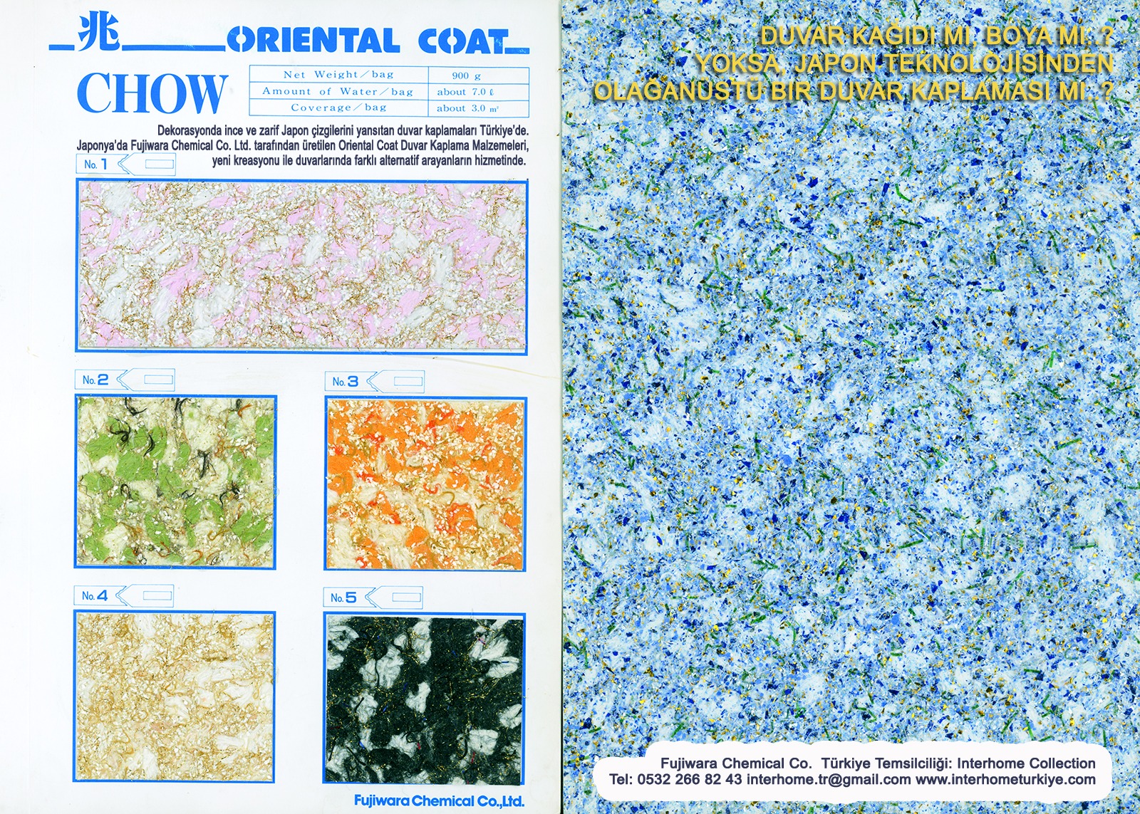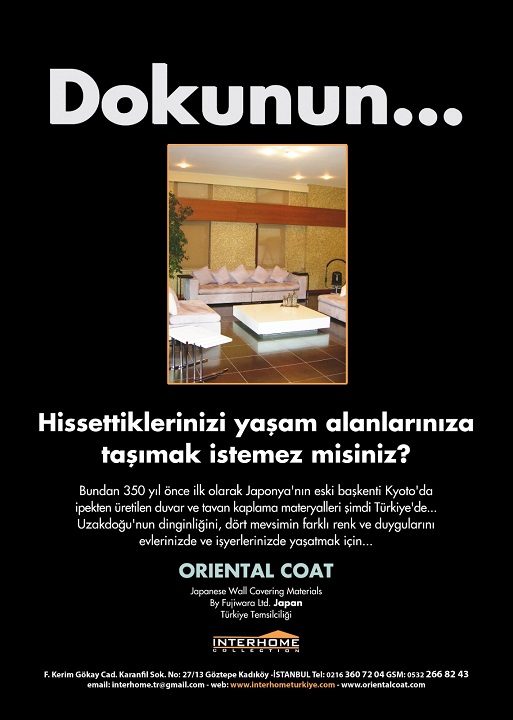 Duvarlara ve tavanlara kolaylıkla uygulanır. Zengin renk kartelasında her zevke hitabeden renkler mevcuttur. Oriental Coat duvar kaplama malzemeleri yeni kreasyonu ile duvarlarında farklı alternatif arayanların hizmetinde.